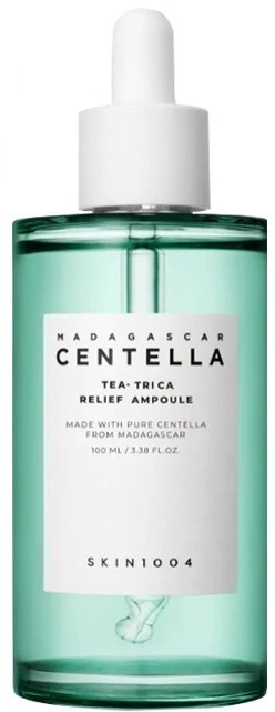SKIN1004 Madagascar Centella Tea-Trica Relief Ampoule Niekomedogenna formuła z silnie łagodzącymi składnikami ma na celu ukojenie skóry, łagodzenie stanów zapalnych i podrażnień dla maksymalnej ulgi.